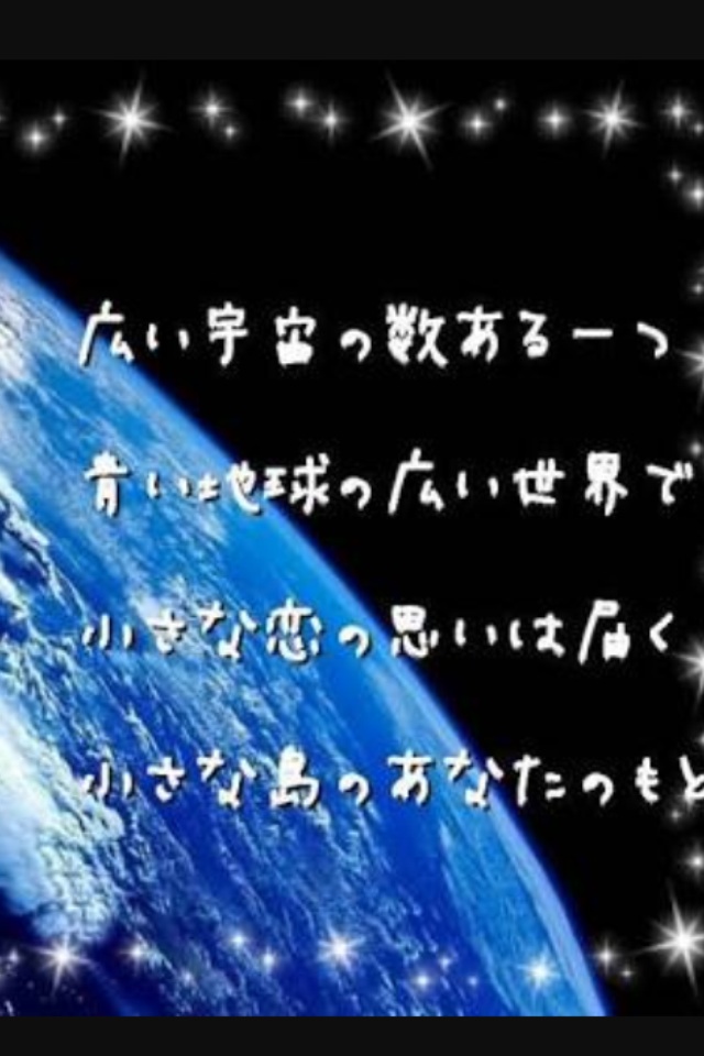 広い宇宙の数ある一つ 青い地球の広い世界で、小さな恋の思いは届く 小さな島のあなたのもとへ