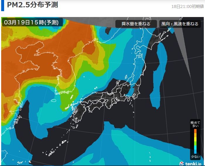 発生源のほとんどが中国ならば、少なくとも、その時の微細粉塵は北側に吹き飛ばされているはずなのだ