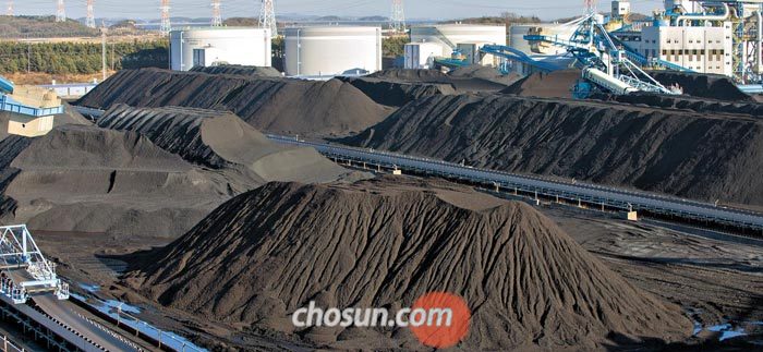 この13日、仁川(インチョン)甕津郡永興火力発電所。ソウルで60キロぐらい離れた霊興島海辺にいるこの発電所の石炭の野積み場で輸送作業が行なわれた。野積場の面積は40万平方メートル。サッカー場(7140平方メートル)56の広さだ。高さ10mぐらいの黒い丘が数十個にそびえていた。'石炭砂漠'ようだった。