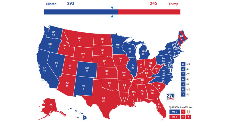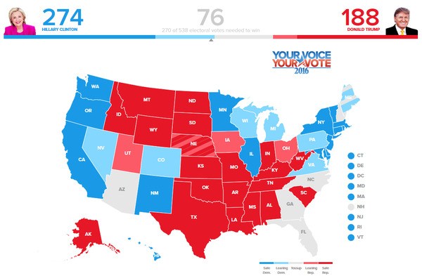 クリントン68 vs トランプ66 (残:404)日韓はこれだけ大きな影響受けるのだから、アメリカ大統領選挙の選挙権要求すべきだな。