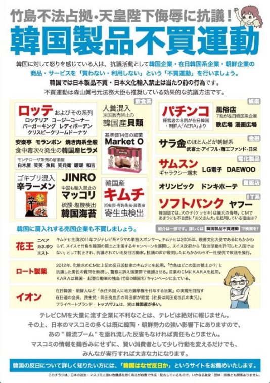 「日本ネットユーザーの間で韓国商品不買世論」…尋常でない嫌韓