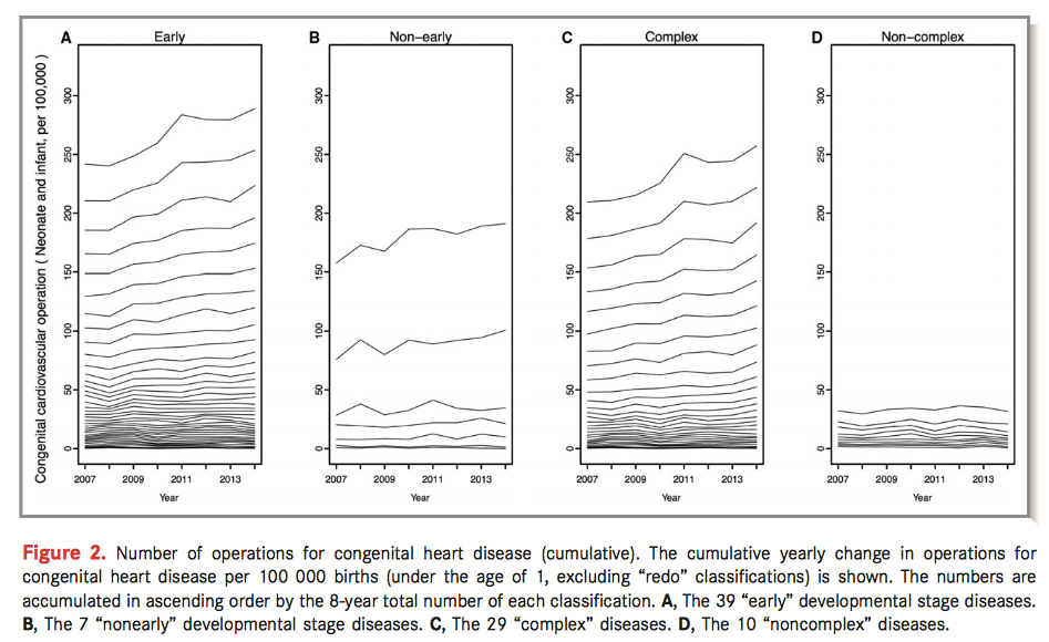 ・この14%は手術数の増加であり、CHDは何度も手術を行なうのが普通なので、患者が14%増加したとは