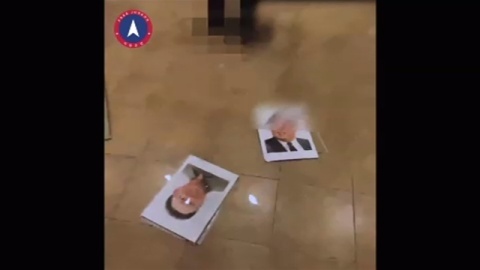 自由朝鮮か? 金日成と金正日の肖像画を破壊