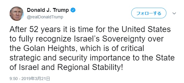 竹島はどうなる トランプが52年間ゴラン高原を占領したイスラエルの主権を認める
