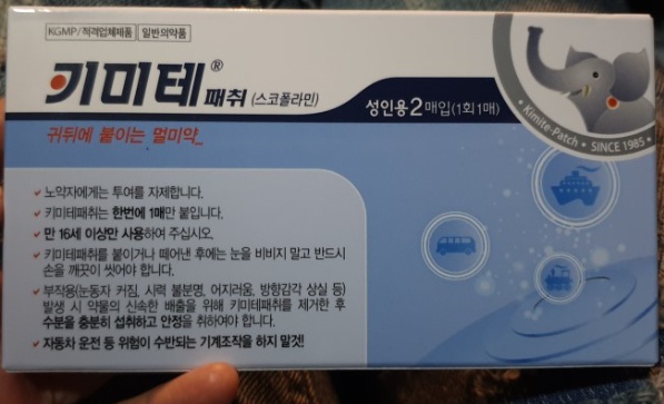 성인용 붙이는 멀미약은 의사의 처방 없이도 구입할 수 있는 일반의약품이지만
