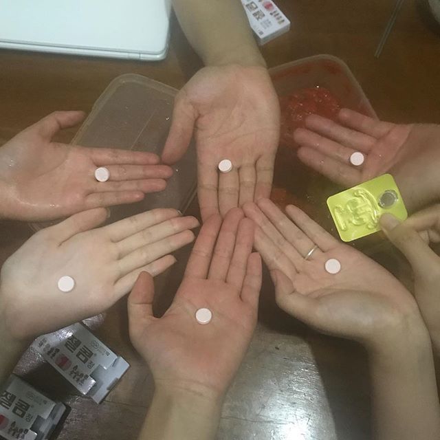 아래 무언가 의식사진은 sns 사진. '기생충 약 복용'사진이다.