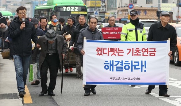 基礎生活受給高齢者など100人、大統領府に向かって行進