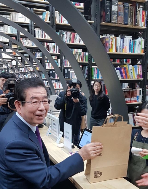(写真キャプチャ)ソウル市長が開館式で1号顧客として購入した本は