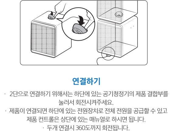 작은 공기정화기 2개를 합체하는 것이 가능하다.