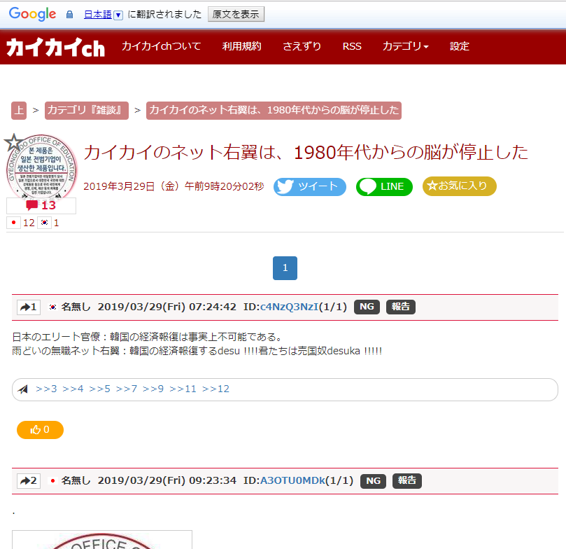 例:韓国人「韓国人は世界一優秀な民族nida!」