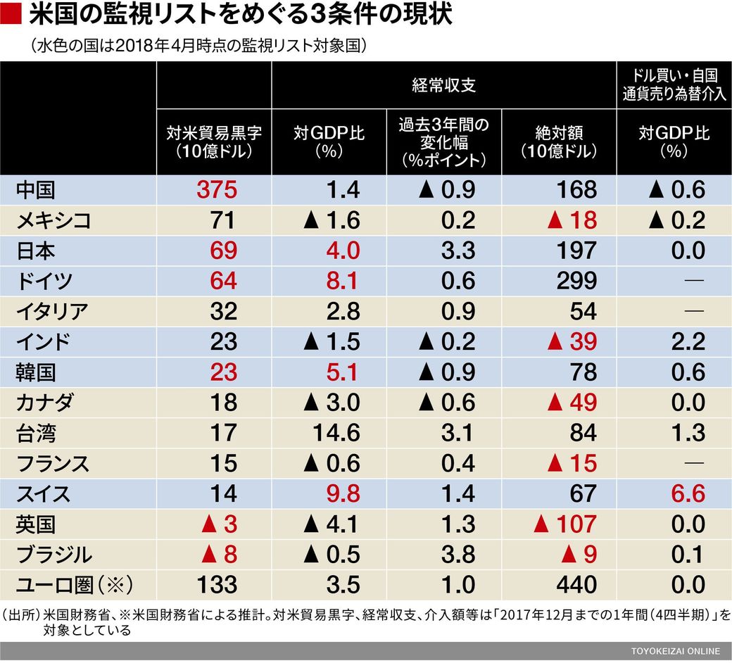 ができると期待される。韓国は「対米貿易収支黒字200億ドル超過」「GDP比経常収支の黒字比率3%超過」
