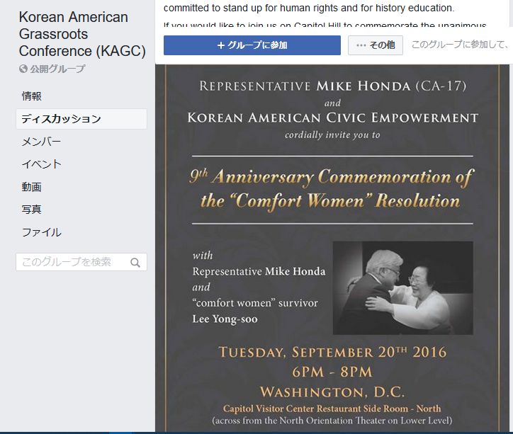 KAGCのメンバーは365人ほどいるそうだが、アメリカの慰安婦像にも関係しているようだ。