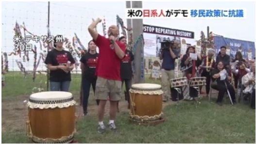 抗議デモは、テキサス州にある移民の収容施設の前で行われました。日系人グループは、中米などから国境を越えて難民申請を待つ親子が収容施設に入れられたうえ、離れ離れにされる事態が続いていると指摘し、トランプ政権を強く批判しました。