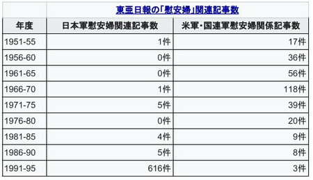 1990年までは、米軍慰安婦問題の報道が多く、それ以降日本軍慰安婦問題に切り替わる。