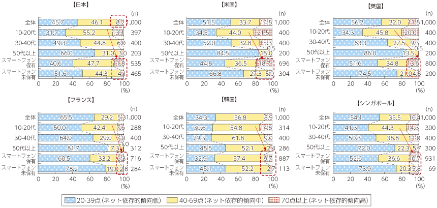 ネット依存傾向の国際比較(年齢別・スマートフォン保有別)