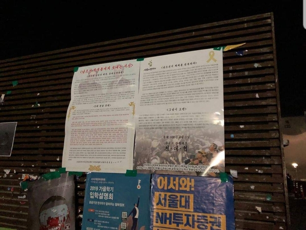 名誉毀損でソウル大に張り出された政権批判の張り紙事件を警察が捜査開始