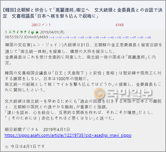 「南北、日本に核ミサイル発射」日本のエイプリルフール記事に韓国激怒!
