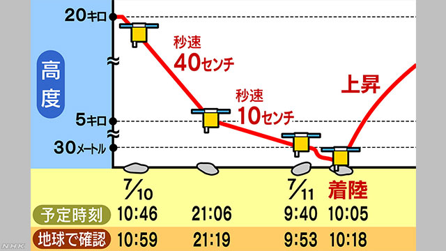 ▽10日午後9時6分ごろ、高度5000メートル付近に到達すると「はやぶさ2」はスピードを秒速10センチに落とします。