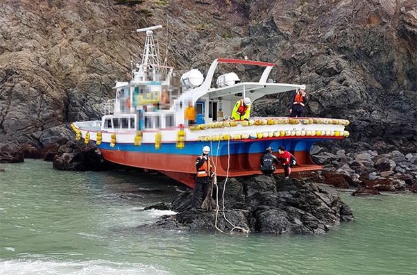 仁川市甕津郡徳積島近くの海上で29t(トン)級有線が6日午前暗礁にかかって座礁されたが、乗客と乗組員30人が皆救助された。