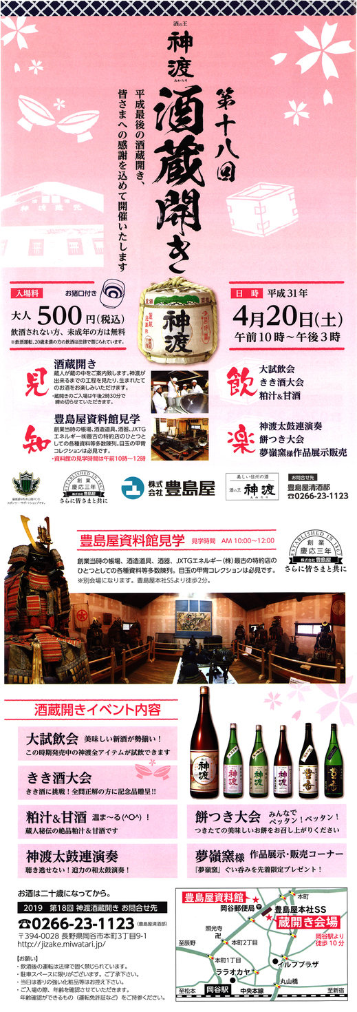私も明日は地元の酒蔵、豊島屋さんの蔵開きに行って来ます。