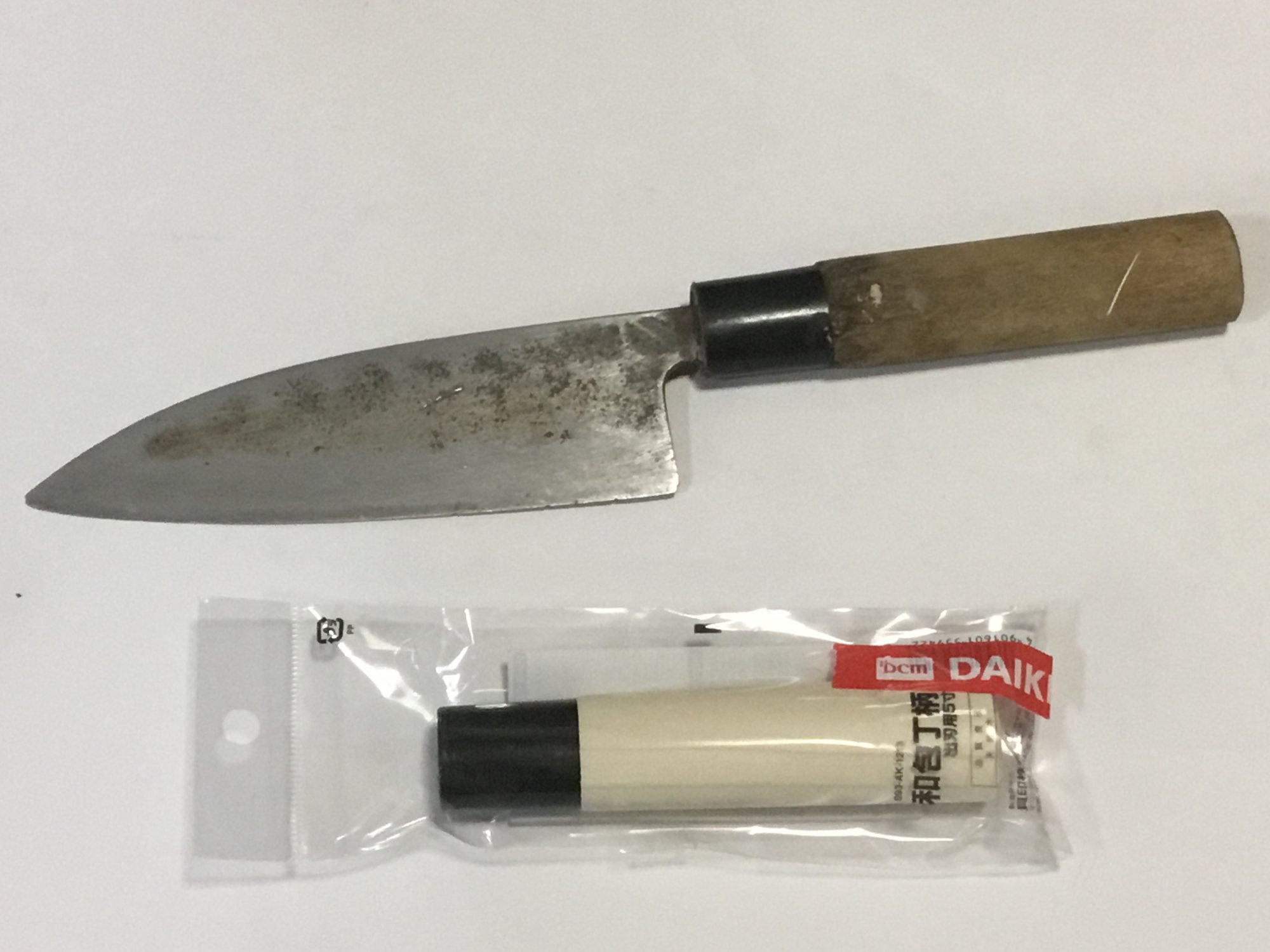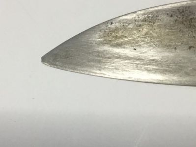 17PATA DE MARRANO2019/04/07(Sun) 14:20:47ID:I4MTU0NzE(1/13)NG報告市場で二百円の土佐物の包丁を軽く錆を落としたアルよポイントが欠けてるアルね。柄もすげかえるアル。60