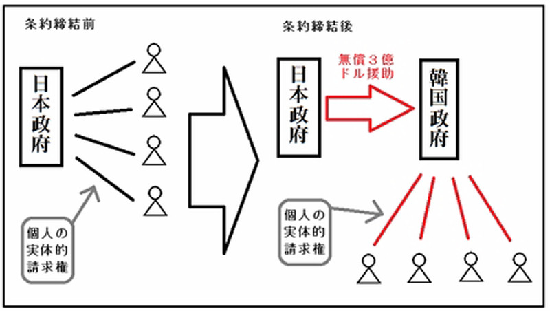 個人請求権は請求権協定により、自国民の請求権は自国内で解決するという枠組みができた。
