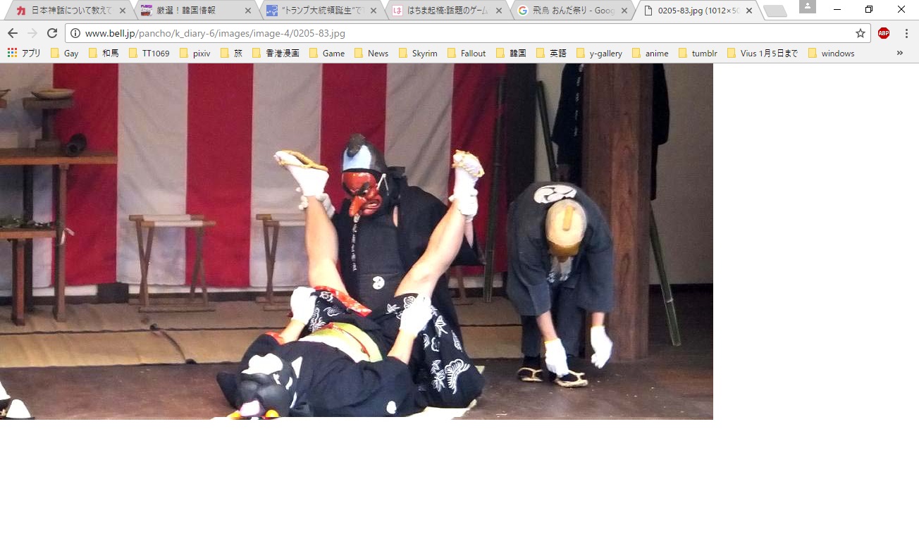 3名無し2016/11/10(Thu) 09:02:35ID:kzMzQwMTA(1/1)NG報告神社にも文献が残っておらず、昔から続けられている祭事です。飛鳥坐神社のおんだ祭日本の神話はエロい話が多い。>>43