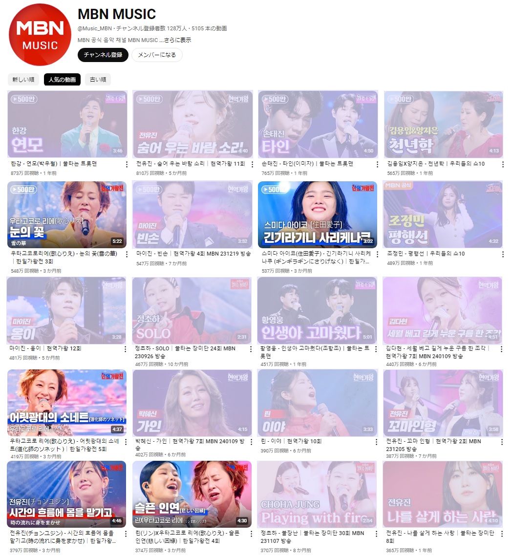 番組中で歌われた歌は、MBN MUSIC チャンネルに全て動画としてアップされている。