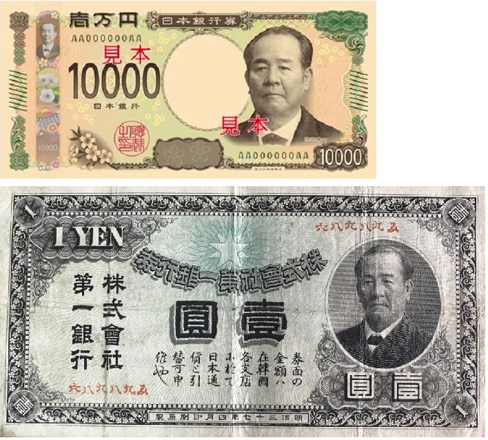 渋沢栄一が紙幣の肖像画に描かれるのは大韓帝国で渋沢率いる第一銀行が発行した1円・5円・10円紙幣以来で、100年以上の時を経ての復活です。東京オリンピックを見据えて