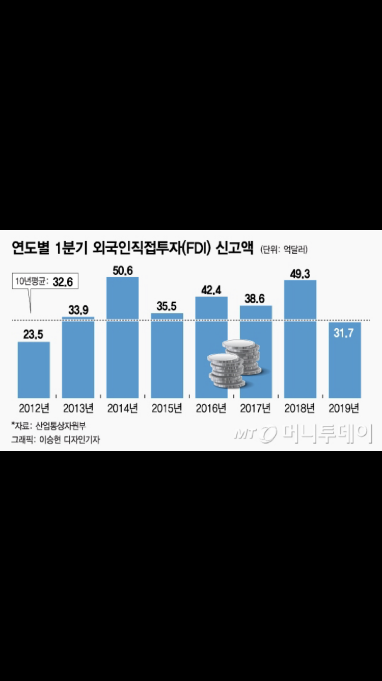 今年第1四半期に韓国に投資すると申告した外国人直接投資の規模が31億7000万ドルで、7年ぶりに最低値を記録した。 今年から外国人投資企業に対する法人税・所得税の減免特例制度が廃止されて直撃を受けたものとみられる。 5年連続で年間の外国人直接投資(FDI)を200億ドル誘致するという目標達成にも赤信号がついた。