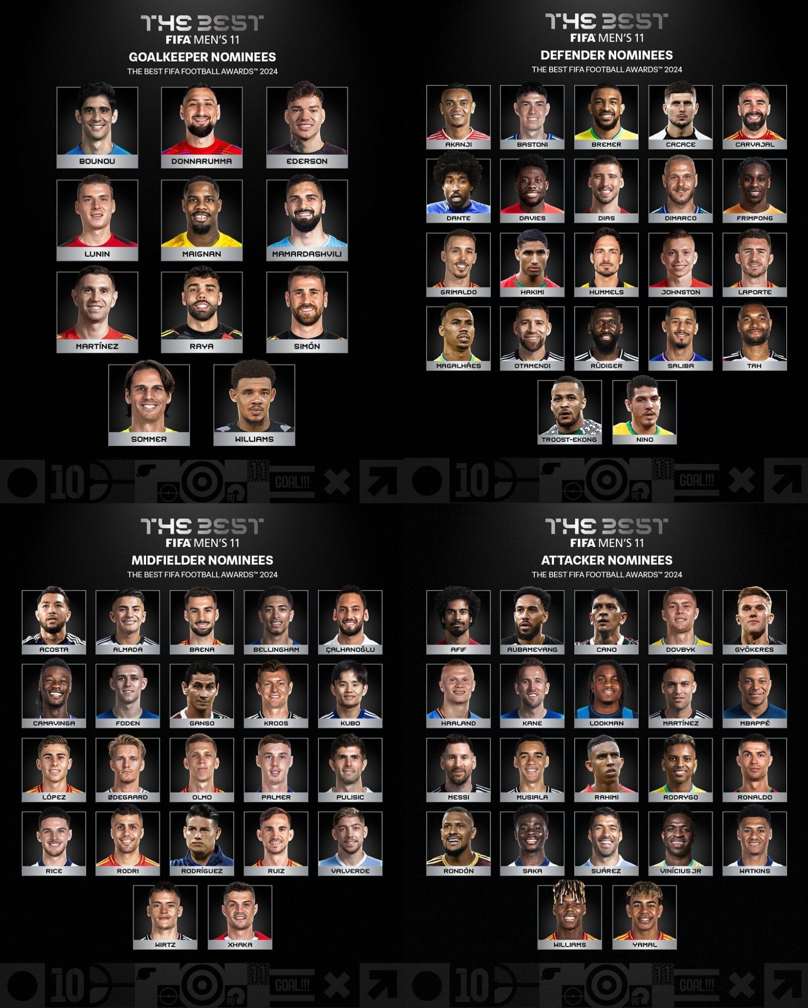 FIFA公式 THE BEST 2024 FIFA Men's 11のミッドフィルダー部門にノミネートされる