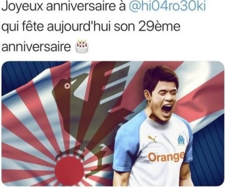 【旭日旗】マルセイユ酒井、誕生祝いの画像に戦犯旗模様で炎上