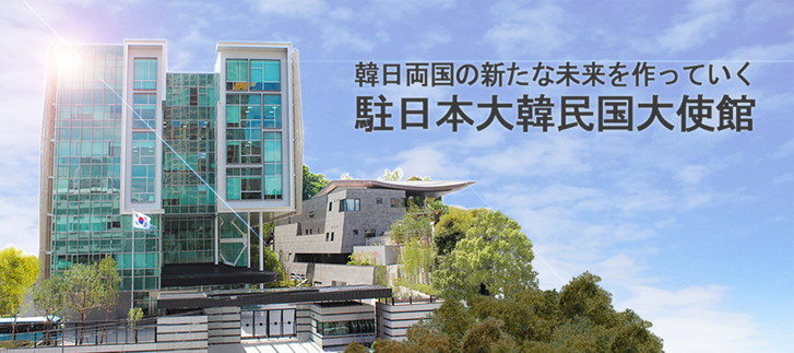 지금은 근처의 오피스 빌딩에 있습니다. 서울의 대사관 말고도 부산과 제주도에도 총영사관이 있습니다.韓国の外交官は仕事もできないし。必要ないだろ。箱も要らないよ。