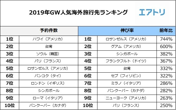 ソウルは昨年に続いて2年連続で最も人気がある旅行地に挙げられた。スカイスキャナー関係者は「日本の最長期連休であるGWを迎えて、日本から海外に出かける航空券検索量は2倍、日本国内を移動する航空券検索量は3倍ほど増加するなど、旅行で連休を充実して送ろうとする旅行者が大幅に増えた」とし「これに伴い、ソウルとともに釜山、大邱、済州など韓国の都市が日本人に人気の旅行地として現れた点は、国内観光産業にプラス要因として作用するだろう」と付け加えた。