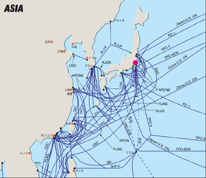 韓国なんて陸の孤島で、海底を経由しないと通信すら出来ない国w