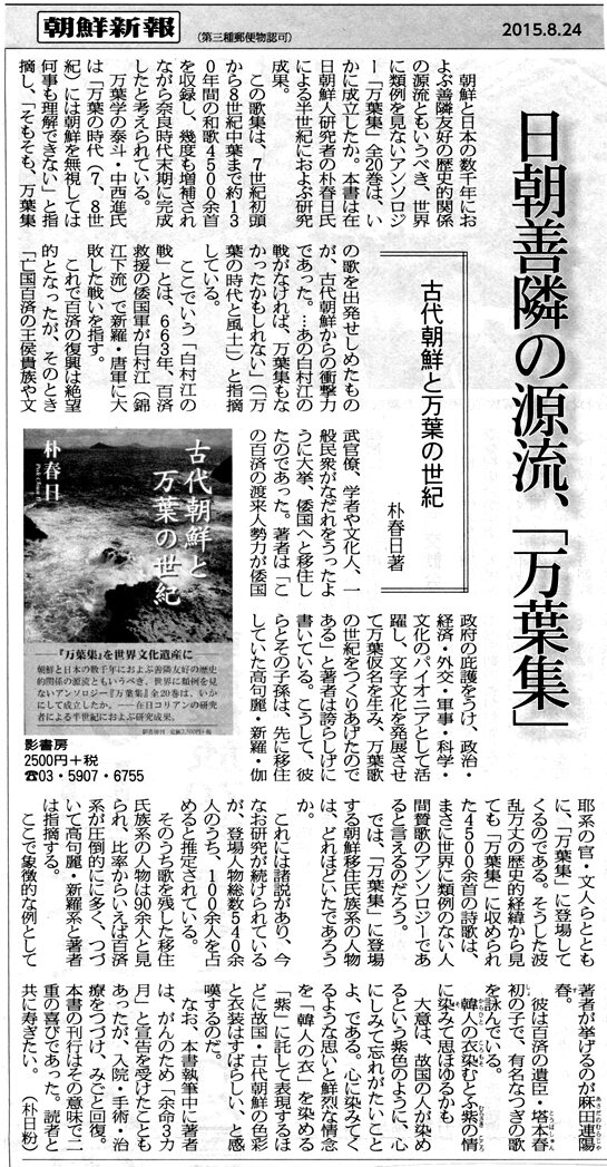 以前の万葉集の韓国起源説とは全く違った理由なのが面白いじゃないか。