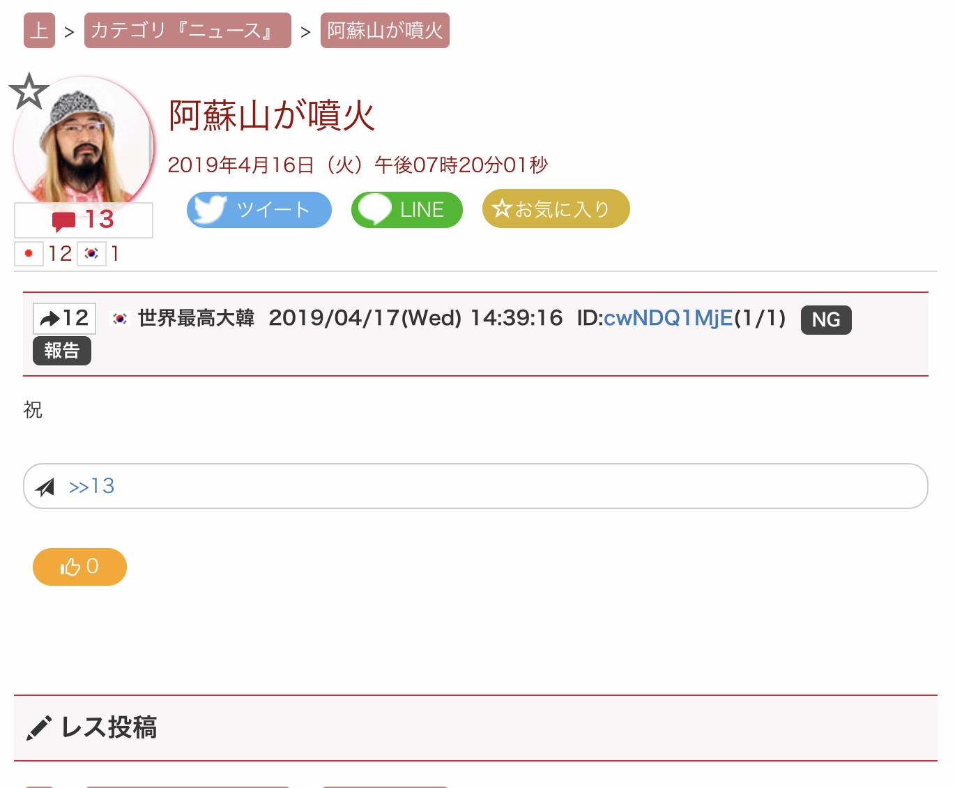安心しろ。阿蘇山が破局噴火する時は半島も滅びる