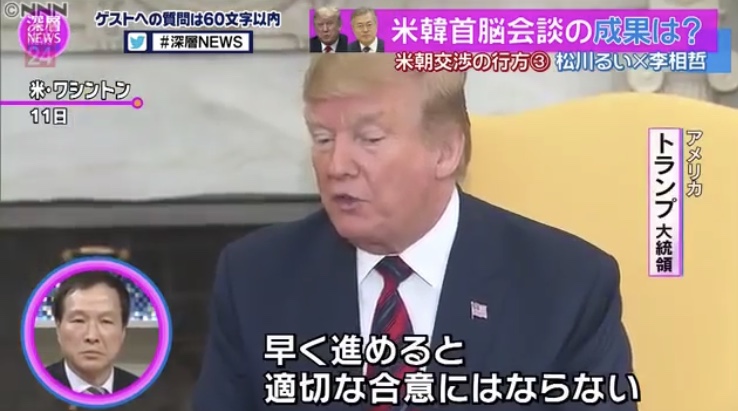 この龍谷大学の教授が「文在虎とトランプさんだけでは座がもたない(両方話す事が無く沈黙の時間が流れる状態)からだ。」