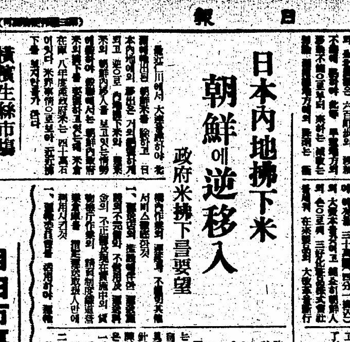 米価が高くなると満州から粟、台湾から米を輸入して朝鮮米を内地に高く売りました。米成金と呼ばれる朝鮮人が新聞記事にもなっています。