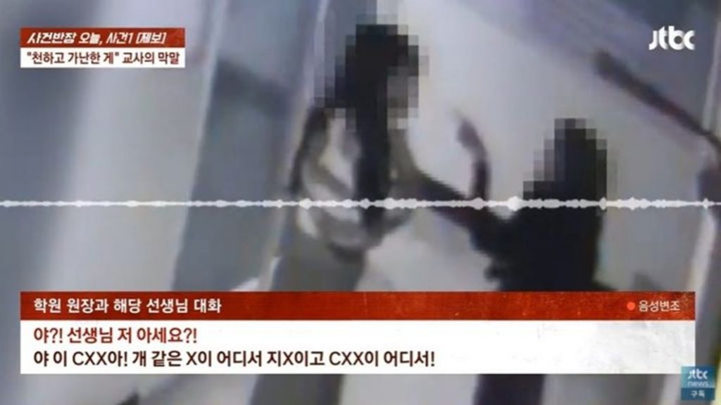 JTBCなどの報道によると、この教師は今月5日、業務ポータルサイトへの接続ができなかったことに腹を立て、学校のコンピューターを壊した。また、廊下でカッターナイフをザーッと鳴らしたり、青い粘着テープを貼ったり剥がしたりしながら歩き回る姿を見たという証言もある。