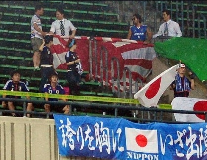 サッカー日韓戦 韓国側観客席に安重根の肖像や横断幕