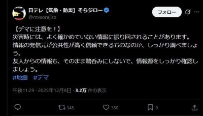 12月8日に青森県で震度6強を観測した地震で、同日午後11時30分すぎに「青森県の大間原子力発電所は現在稼働停止などはしていないということです」とする記事を配信しましたが、大間原発は現在、建設中であり稼働していません。大間原発に取材しその段階で被害は確認されていないとの情報を得て記事化しましたが、「これまでに被害は確認されていない」とすべきところ、誤った表現になりました。訂正してお詫び申し上げます。マスコミは誤報または報道しない自由を行使したらトップが謝罪会見をしなければならないと思う
