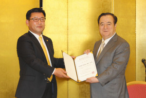 水戸市内であった締結式で、県観光物産協会長の橋本昌知事は「世界的に有名な観光地の済州と協定を締結できた。観光交流の拡大に努めたい」。