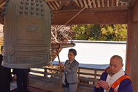 梁桂和・駐仙台韓国総領事も「日韓の友好関係につながるように」と鐘を突き、「(日韓関係は)今はぎくしゃくして見えるが、昔の方も隣国との友好を重んじてきた。普段お寺で国際友好を願う集まりはないのでびっくりして参加した」と話した。