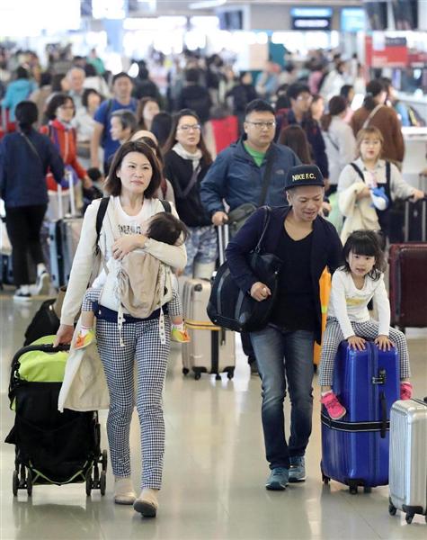 関西空港で28日、ゴールデンウイーク(GW)を海外で過ごす旅行客の出国ラッシュが始まった。国際線の出発ロビーは朝からスーツケースを引く若者や家族連れたちでにぎわった。