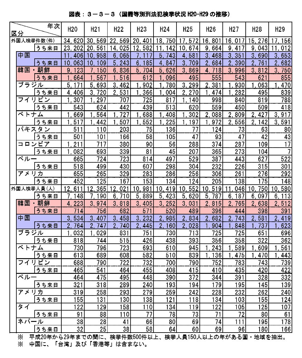 昔に比べれば、来日韓国人の犯罪件数が減っているのも事実だな。
