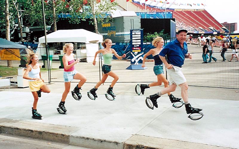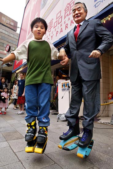 ドクター中松ピョンピョンは、地面との衝撃をバネが吸収する。