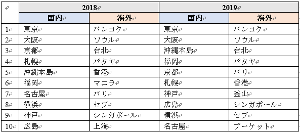世界で最も急成長しているオンライン旅行会社(OTA)のひとつであるアゴダ (https://www.agoda.com/?site_id=1811396) は、このたび、2019年4月27日~5月6日を調査対象期間とした、今年のゴールデンウィークで日本人旅行者に人気の国内および海外の渡航先トップ10ランキングを発表しました。