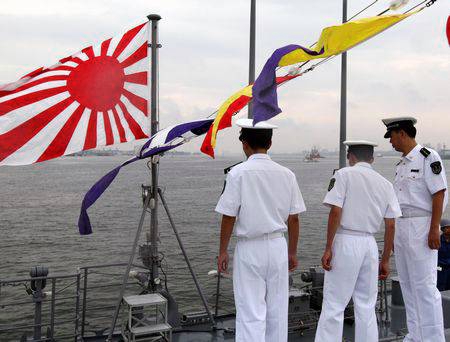 >自衛隊の旗であり、戦犯旗と認識される旭日旗を掲げています。