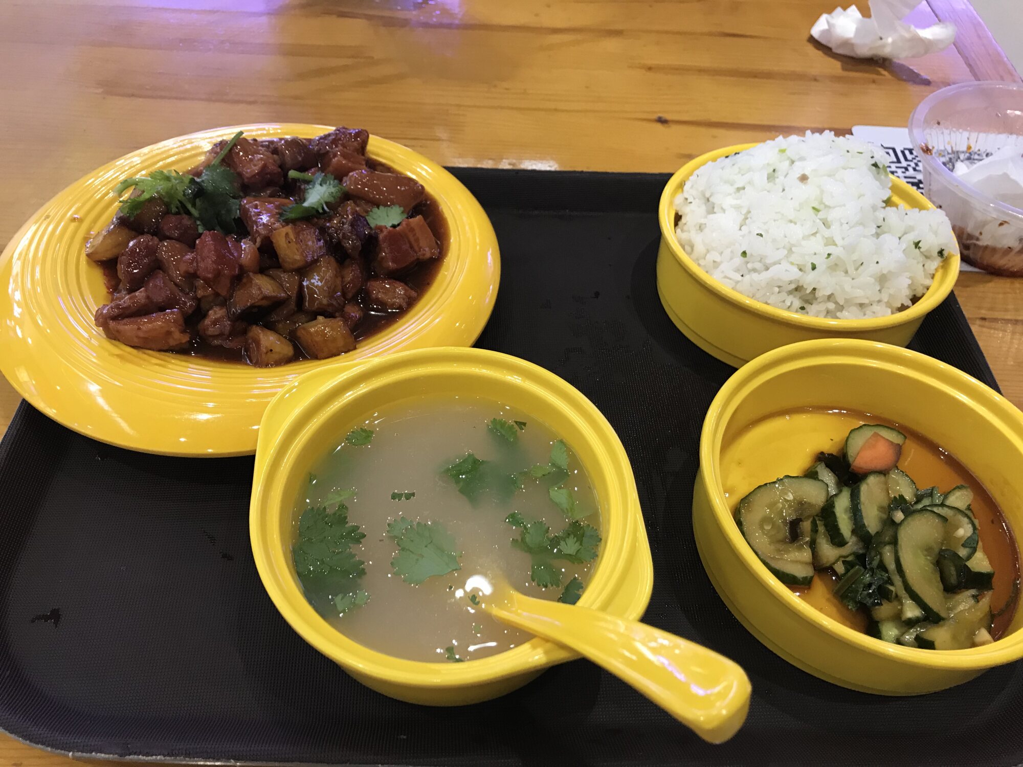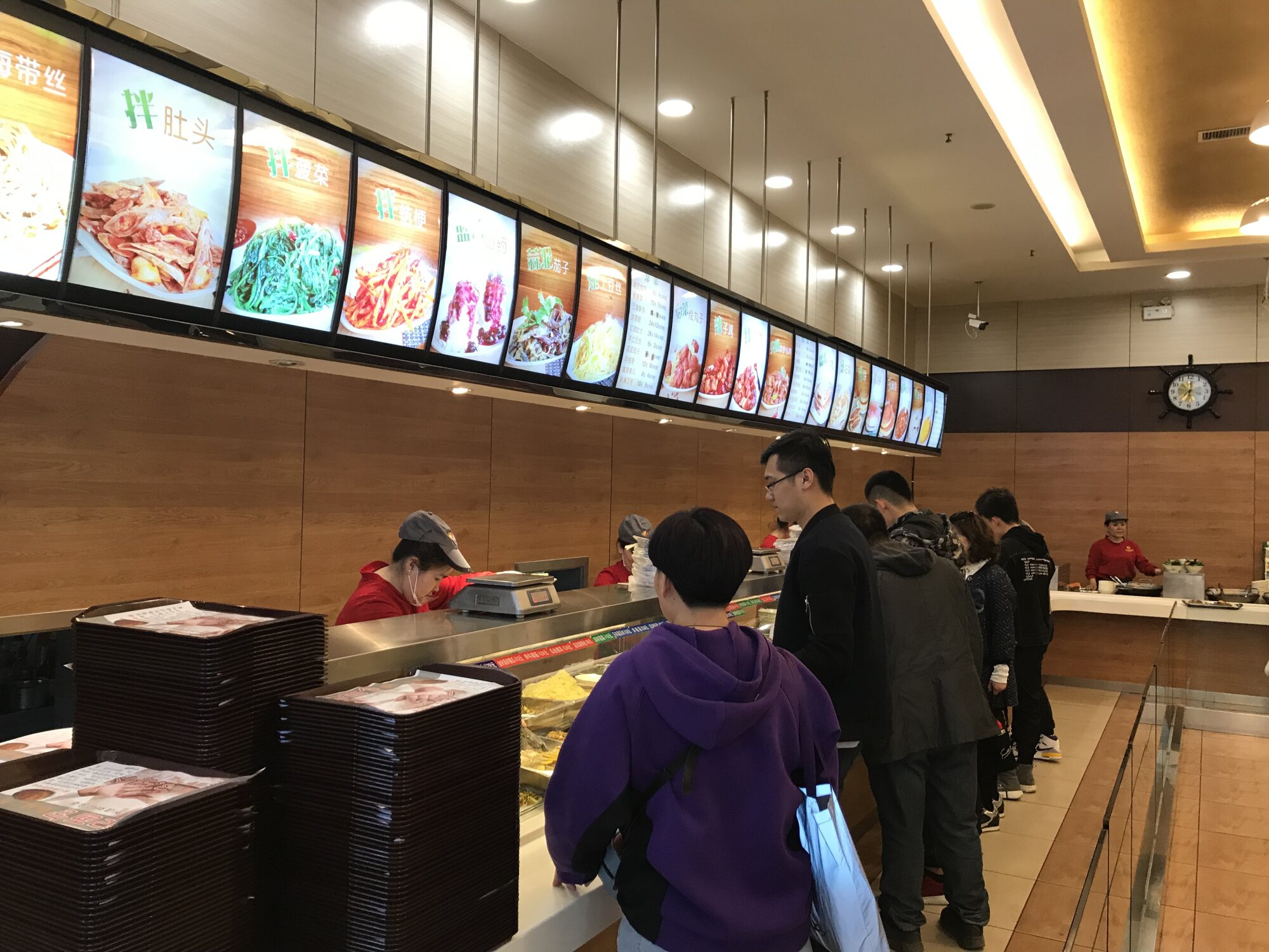 なんかカフェテリアスタイルでおかずをいくつかとお粥を選んで後で代金を払うスタイル。